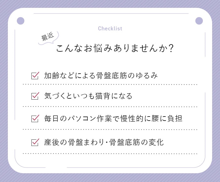 同じように姿勢や座り時間が気になる方や、骨盤底筋の意識づけをしたい方に