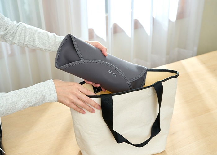くるっと巻いてバッグにすっきり。