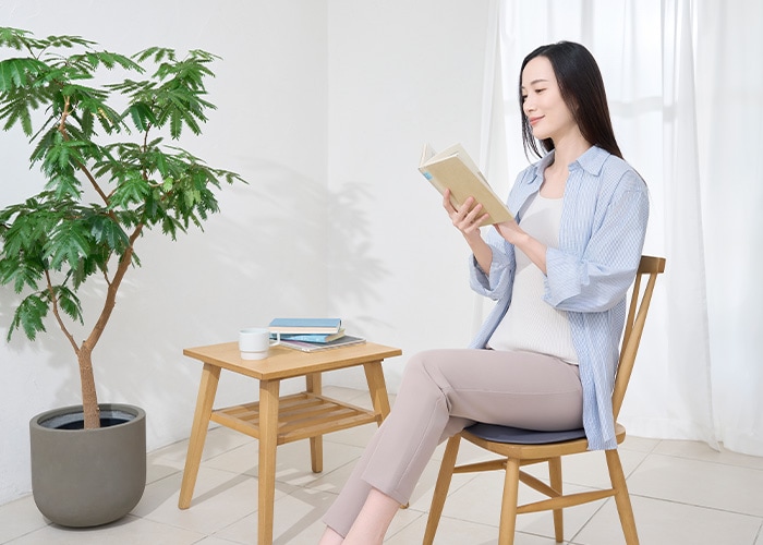 座るだけで姿勢と筋肉をムリなく整える、女性のためのやさしい設計。